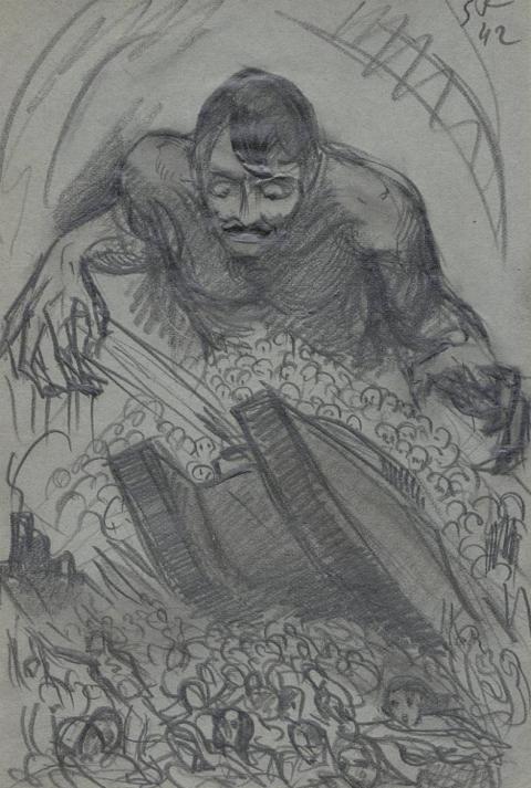 Иллюстрация — картина С.Н.Рериха «Адольф Гитлер (Карикатура)»