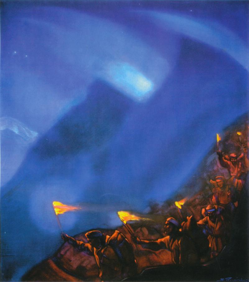 Ілюстрація — картина М. К. Реріха «Трудимося вночі»