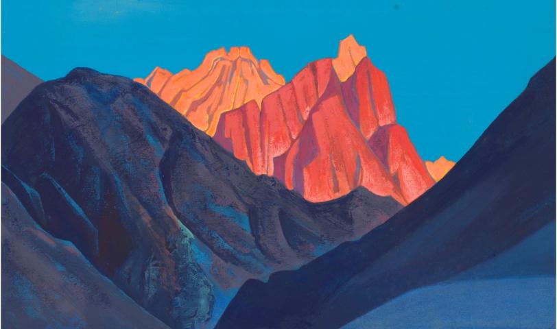 Ілюстрація — картина М. К. Реріха «Захід. Святі гори Гімалаї»