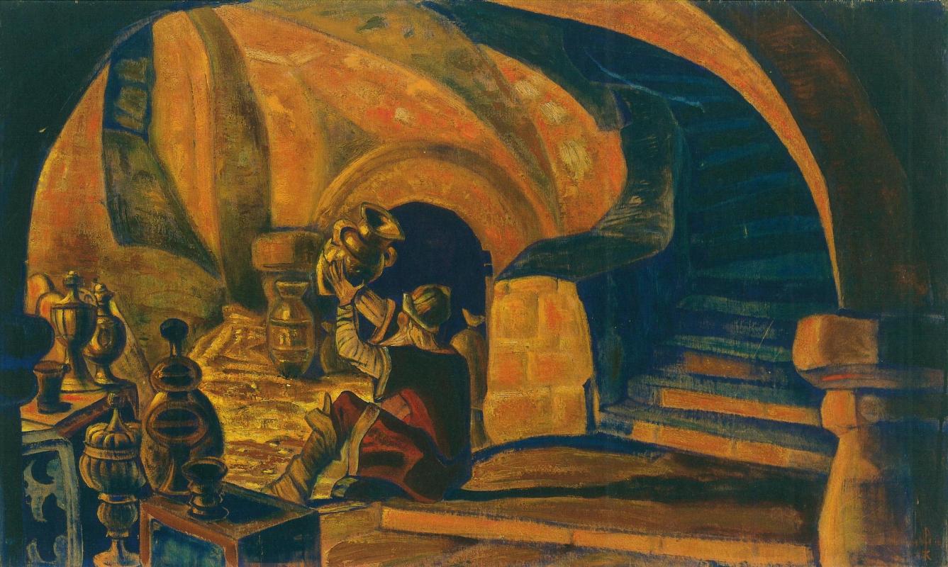 Ілюстрація — картина М. К. Реріха «Скупий лицар»